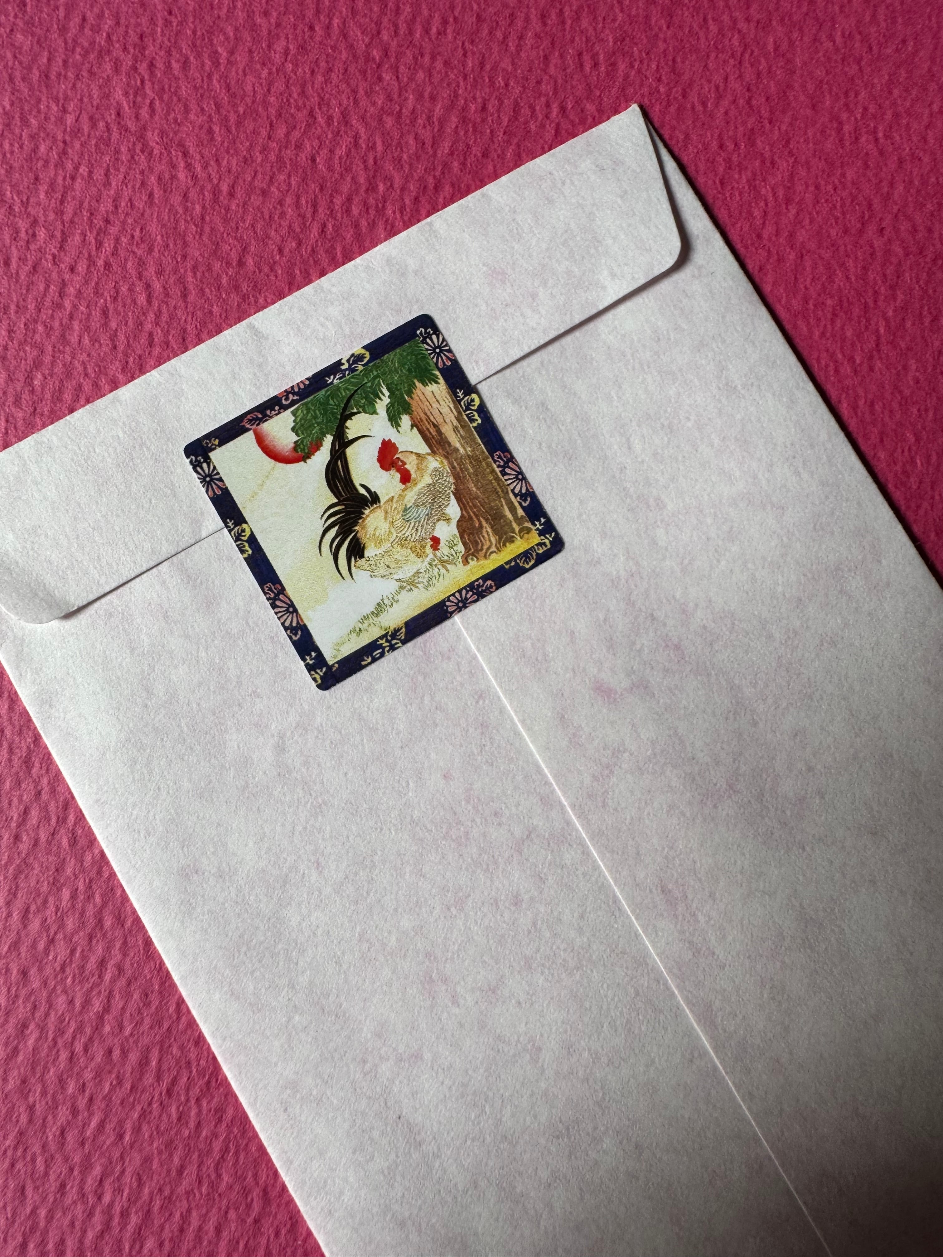現代のチラシ広告にあたる「引札(ひきふだ)」の図版から、目をひくいきもの達を選んでシーールをつくりました。